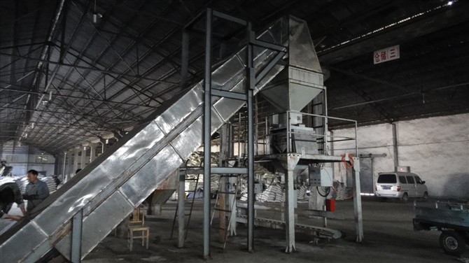 This production line is composed of computer batching and control system, batching system, bucket conveyor, blender, quantitative packing scale and sealing machine.